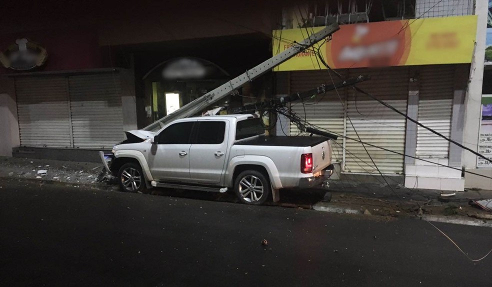 Ainda segundo a PM, o poste caiu em cima da caminhonete e destruiu parte do veículo. O homem também bateu em um carro que estava estacionado.